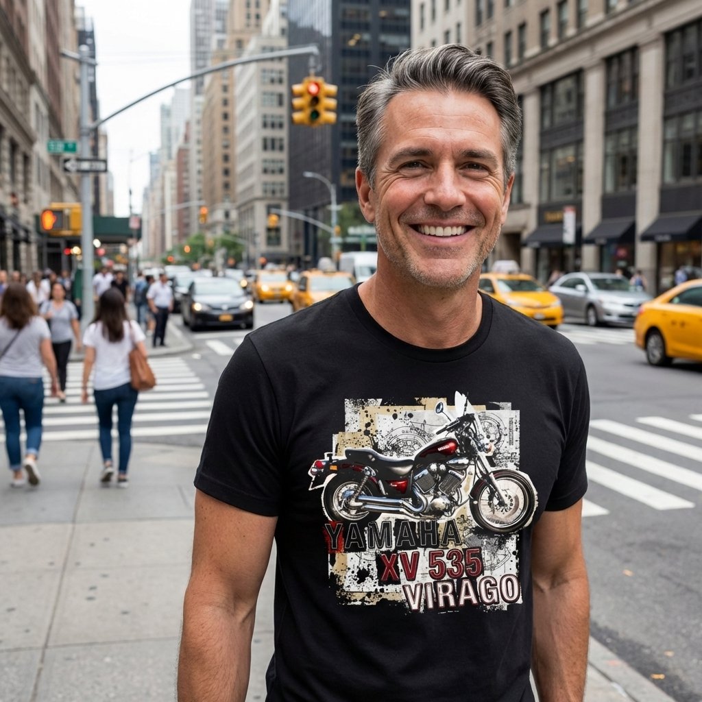 Bavlněné tričko o gramáži 160g/m2 s vypracovaným originálním motivem Yamaha Virago. Tričko pro auto-moto nadšence, ale i pro milovníky retro motivů.